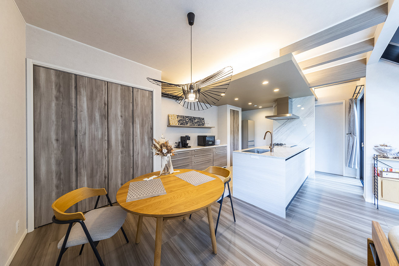 下がり天井&間接照明がお洒落なダイニングキッチン