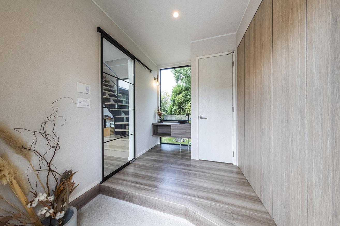 正面の窓やLDKへ続くガラス扉が開放感を創出