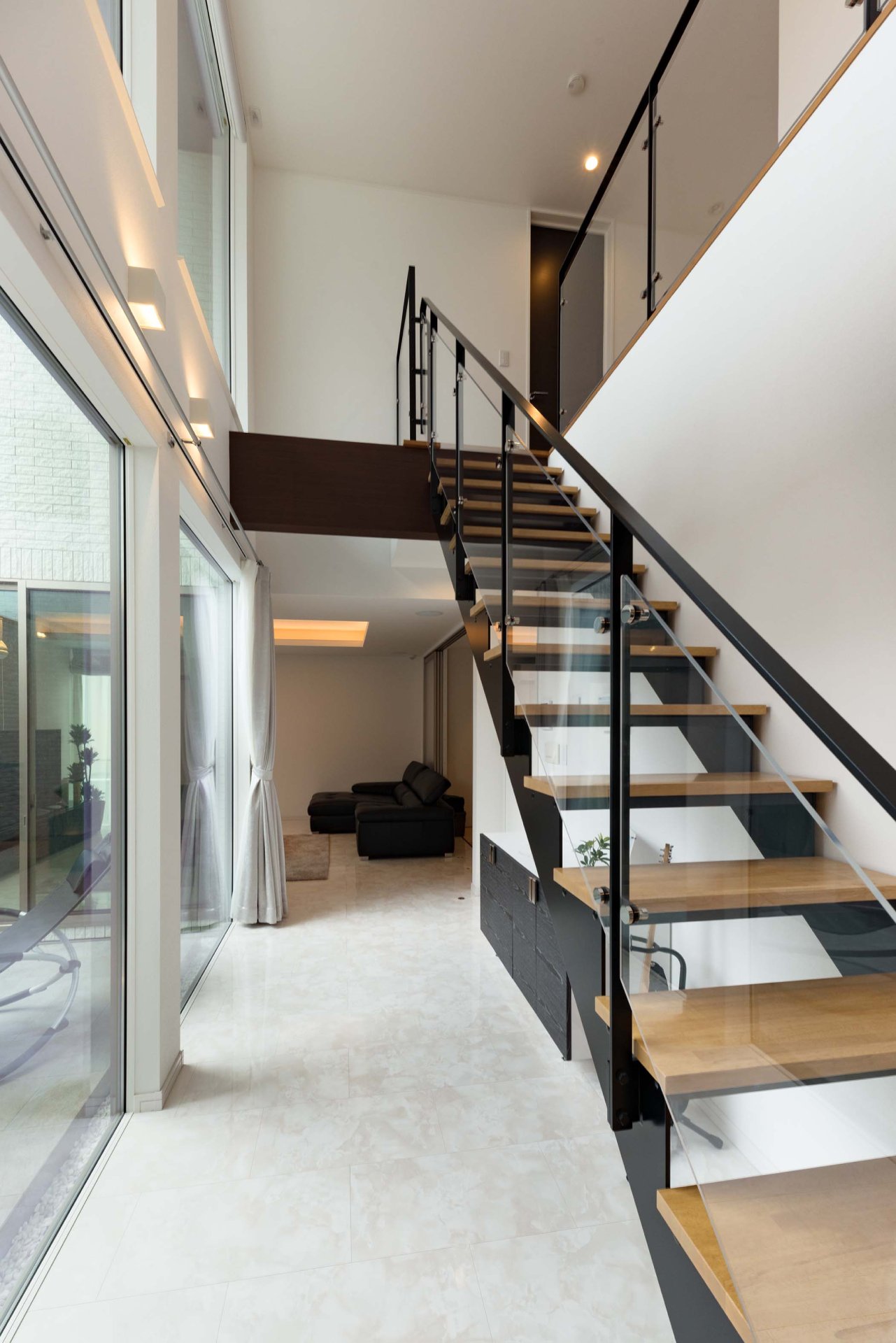 中庭からの光を遮らないデザイン階段を設置