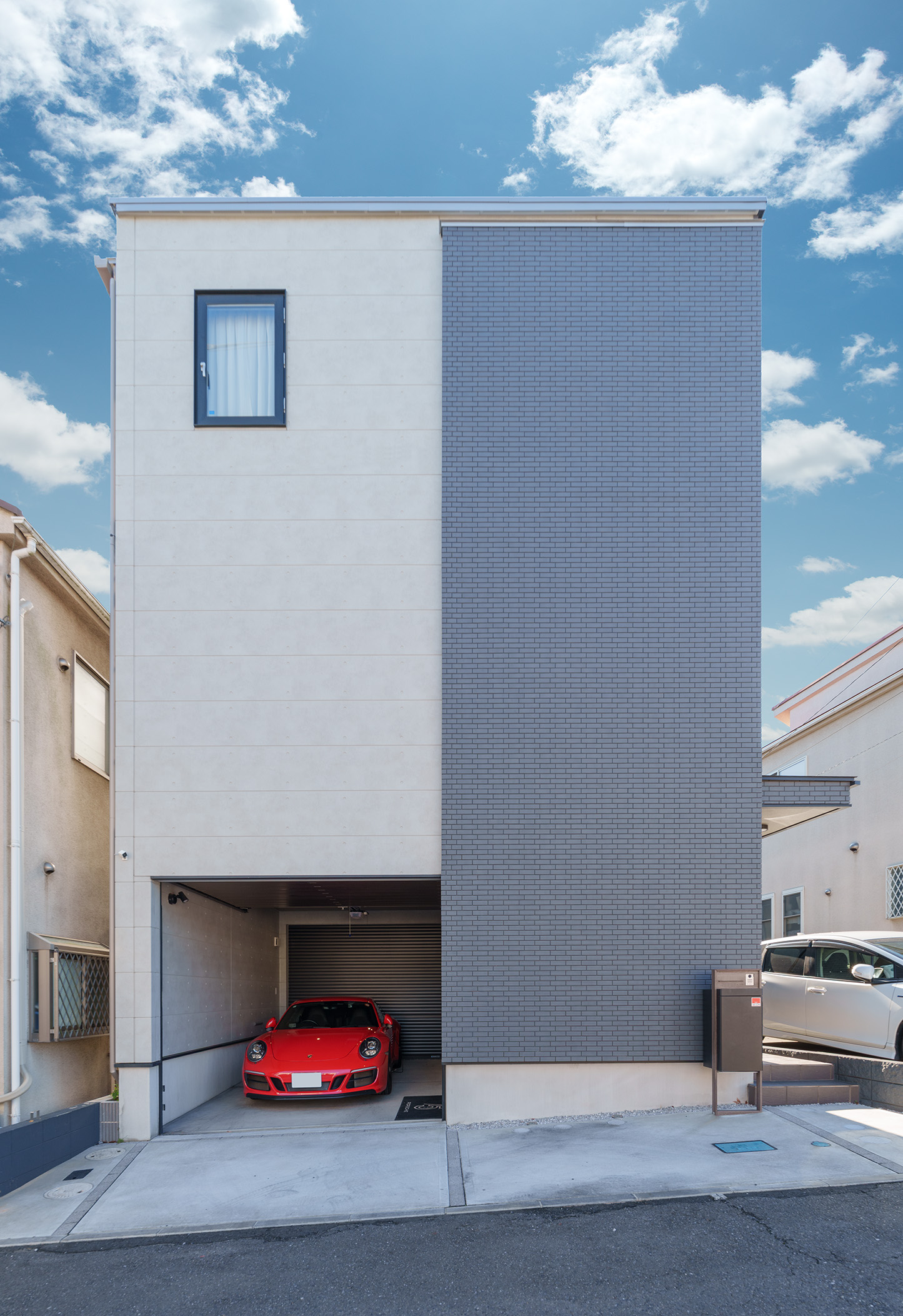 赤い愛車が映える、シンプルで美しい外観