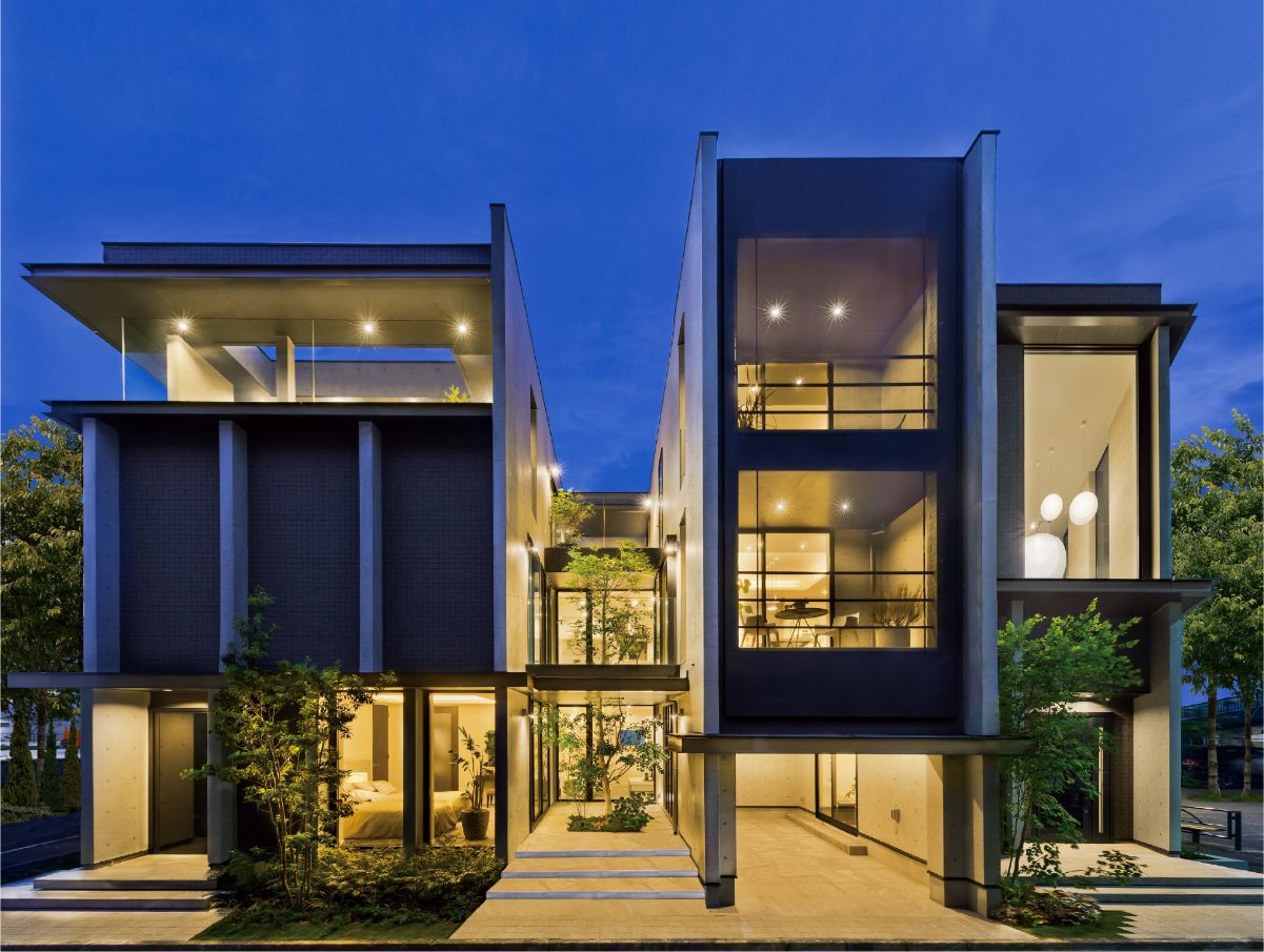 バルコニーを介して2つの世帯をゆるやかにつなげた。あえて中間領域を共有スペースとすることで、互いのプライバシーを守りつつ、自然な交流が生まれる。