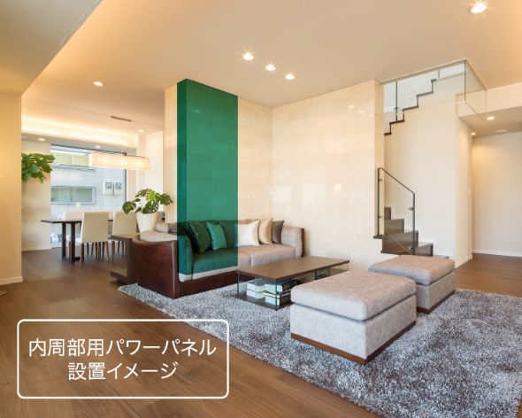 さらに高耐力な壁倍率13.4倍の外周部用「パワーパネル」を採用すれば、設計の自由度はさらにアップ。優れた耐震性能はそのままに、パノラマビューを愉しめる最大約5.6mの大開口をつくることも可能です。都市部の狭小敷地でも開放的な室内空間や大きな開口部を確保したり2台並列のビルトインガレージが実現できるなど、住まいづくりの夢がさらに大きく広がります。
